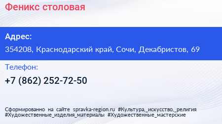 Феникс, столовая по адресу 354208, Краснодарский край, Сочи, Декабристов, 69 в дальнейшем Организация, размещена в следующих категориях: