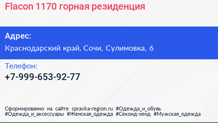 Flacon 1170, горная резиденция по адресу Краснодарский край, Сочи, Сулимовка, 6 в дальнейшем Организация, размещена в следующих категориях: