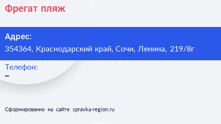 Фрегат, пляж по адресу 354364, Краснодарский край, Сочи, Ленина, 219/8г в дальнейшем Организация, размещена в следующих категориях:
