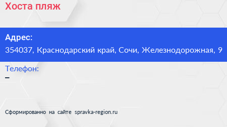 Хоста, пляж по адресу 354037, Краснодарский край, Сочи, Железнодорожная, 9 в дальнейшем Организация, размещена в следующих категориях: