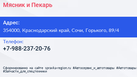 Мясник и Пекарь по адресу 354000, Краснодарский край, Сочи, Горького, 89/4 в дальнейшем Организация, размещена в следующих категориях: