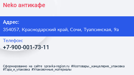 Neko, антикафе по адресу 354057, Краснодарский край, Сочи, Туапсинская, 9а в дальнейшем Организация, размещена в следующих категориях: