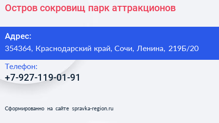 Остров сокровищ, парк аттракционов по адресу 354364, Краснодарский край, Сочи, Ленина, 219Б/20 в дальнейшем Организация, размещена в следующих категориях: