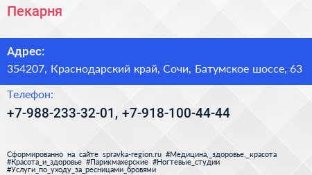 Пекарня по адресу 354207, Краснодарский край, Сочи, Батумское шоссе, 63 в дальнейшем Организация, размещена в следующих категориях: