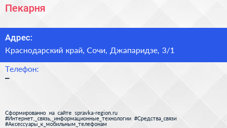 Пекарня по адресу Краснодарский край, Сочи, Джапаридзе, 3/1 в дальнейшем Организация, размещена в следующих категориях: