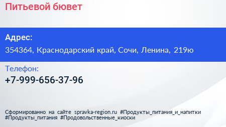 Питьевой бювет по адресу 354364, Краснодарский край, Сочи, Ленина, 219ю в дальнейшем Организация, размещена в следующих категориях:
