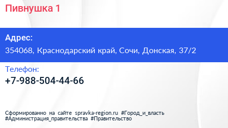 Пивнушка №1 по адресу 354068, Краснодарский край, Сочи, Донская, 37/2 в дальнейшем Организация, размещена в следующих категориях:
