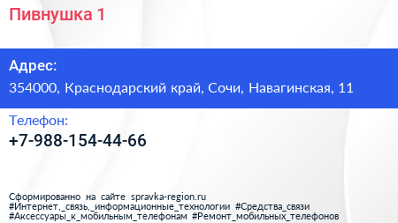 Пивнушка №1 по адресу 354000, Краснодарский край, Сочи, Навагинская, 11 в дальнейшем Организация, размещена в следующих категориях: