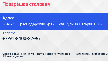 Поварёшка, столовая по адресу 354065, Краснодарский край, Сочи, улица Гагарина, 78 в дальнейшем Организация, размещена в следующих категориях: