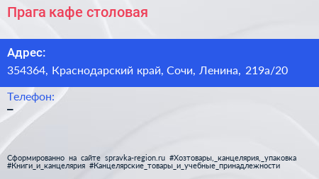 Прага, кафе-столовая по адресу 354364, Краснодарский край, Сочи, Ленина, 219а/20 в дальнейшем Организация, размещена в следующих категориях: