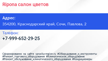 Ripona, салон цветов по адресу 354200, Краснодарский край, Сочи, Павлова, 2 в дальнейшем Организация, размещена в следующих категориях: