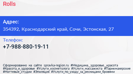 Rolls по адресу 354392, Краснодарский край, Сочи, Эстонская, 27 в дальнейшем Организация, размещена в следующих категориях: