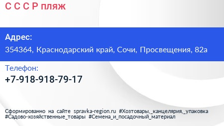 С.С.С.Р., пляж по адресу 354364, Краснодарский край, Сочи, Просвещения, 82а в дальнейшем Организация, размещена в следующих категориях: