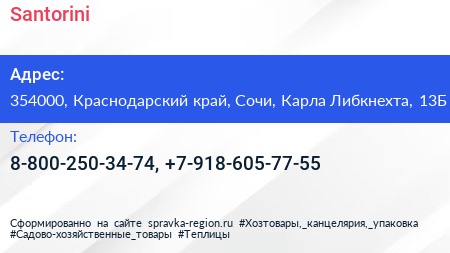 Santorini по адресу 354000, Краснодарский край, Сочи, Карла Либкнехта, 13Б в дальнейшем Организация, размещена в следующих категориях: