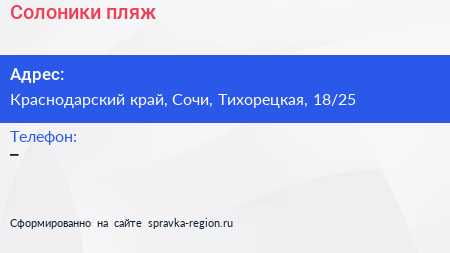 Солоники, пляж по адресу Краснодарский край, Сочи, Тихорецкая, 18/25 в дальнейшем Организация, размещена в следующих категориях: