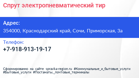 Спрут, электропневматический тир по адресу 354000, Краснодарский край, Сочи, Приморская, 3а в дальнейшем Организация, размещена в следующих категориях: