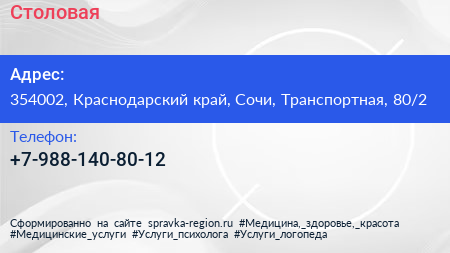 Столовая по адресу 354002, Краснодарский край, Сочи, Транспортная, 80/2 в дальнейшем Организация, размещена в следующих категориях: