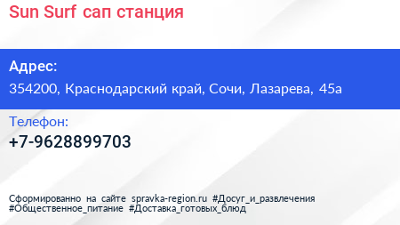 Sun Surf, сап-станция по адресу 354200, Краснодарский край, Сочи, Лазарева, 45а в дальнейшем Организация, размещена в следующих категориях: