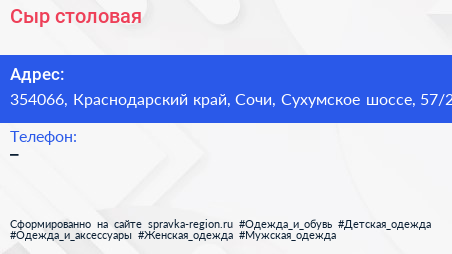Сыр, столовая по адресу 354066, Краснодарский край, Сочи, Сухумское шоссе, 57/2 в дальнейшем Организация, размещена в следующих категориях:
