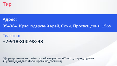 Тир по адресу 354364, Краснодарский край, Сочи, Просвещения, 156в в дальнейшем Организация, размещена в следующих категориях: