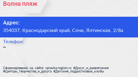 Волна, пляж по адресу 354037, Краснодарский край, Сочи, Ялтинская, 2/8а в дальнейшем Организация, размещена в следующих категориях: