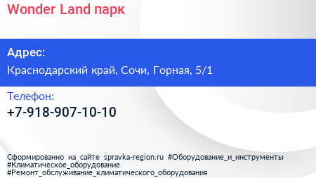 Wonder Land, парк по адресу Краснодарский край, Сочи, Горная, 5/1 в дальнейшем Организация, размещена в следующих категориях:
