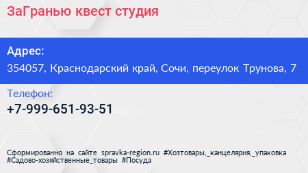 ЗаГранью, квест-студия по адресу 354057, Краснодарский край, Сочи, переулок Трунова, 7 в дальнейшем Организация, размещена в следующих категориях: