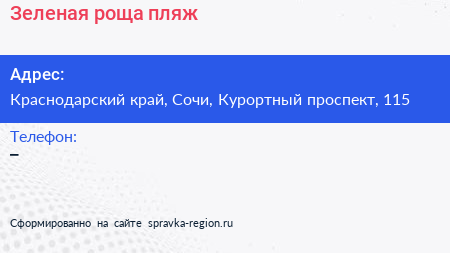 Зеленая роща, пляж по адресу Краснодарский край, Сочи, Курортный проспект, 115 в дальнейшем Организация, размещена в следующих категориях: