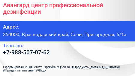 Авангард, центр профессиональной дезинфекции по адресу 354000, Краснодарский край, Сочи, Пригородная, 6/1а в дальнейшем Организация, размещена в следующих категориях:
