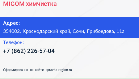 MIGOM, химчистка по адресу 354002, Краснодарский край, Сочи, Грибоедова, 11а в дальнейшем Организация, размещена в следующих категориях: