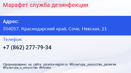 Марафет, служба дезинфекции по адресу 354057, Краснодарский край, Сочи, Невская, 21 в дальнейшем Организация, размещена в следующих категориях: