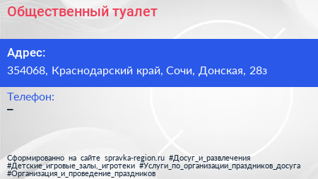 Общественный туалет по адресу 354068, Краснодарский край, Сочи, Донская, 28з в дальнейшем Организация, размещена в следующих категориях: