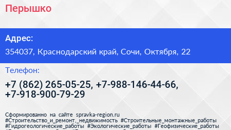 Перышко по адресу 354037, Краснодарский край, Сочи, Октября, 22 в дальнейшем Организация, размещена в следующих категориях: