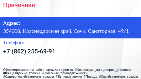 Прачечная по адресу 354008, Краснодарский край, Сочи, Санаторная, 49/1 в дальнейшем Организация, размещена в следующих категориях: