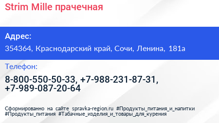 Strim Mille, прачечная по адресу 354364, Краснодарский край, Сочи, Ленина, 181а в дальнейшем Организация, размещена в следующих категориях: