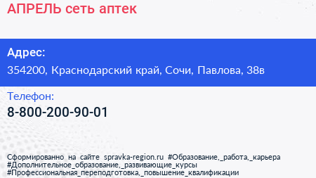 АПРЕЛЬ, сеть аптек по адресу 354200, Краснодарский край, Сочи, Павлова, 38в в дальнейшем Организация, размещена в следующих категориях: