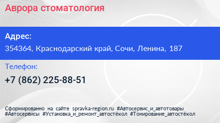 Аврора, стоматология по адресу 354364, Краснодарский край, Сочи, Ленина, 187 в дальнейшем Организация, размещена в следующих категориях: