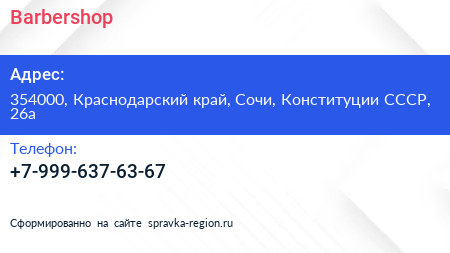 Barbershop по адресу 354000, Краснодарский край, Сочи, Конституции СССР, 26а в дальнейшем Организация, размещена в следующих категориях: