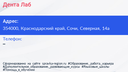 Дента-Лаб по адресу 354000, Краснодарский край, Сочи, Северная, 14а в дальнейшем Организация, размещена в следующих категориях: