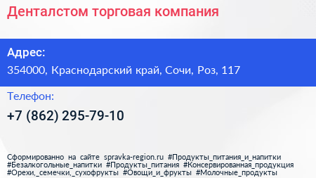 Денталстом, торговая компания по адресу 354000, Краснодарский край, Сочи, Роз, 117 в дальнейшем Организация, размещена в следующих категориях: