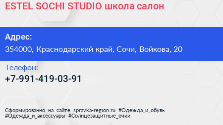 ESTEL SOCHI STUDIO, школа-салон по адресу 354000, Краснодарский край, Сочи, Войкова, 20 в дальнейшем Организация, размещена в следующих категориях: