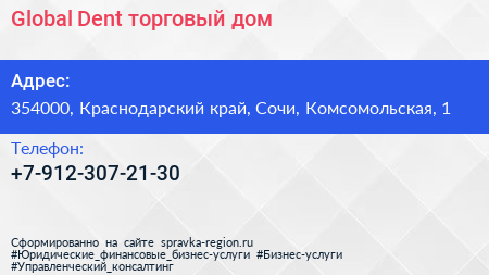 Global Dent, торговый дом по адресу 354000, Краснодарский край, Сочи, Комсомольская, 1 в дальнейшем Организация, размещена в следующих категориях: