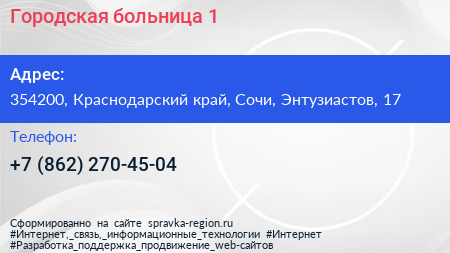 Городская больница №1 по адресу 354200, Краснодарский край, Сочи, Энтузиастов, 17 в дальнейшем Организация, размещена в следующих категориях: