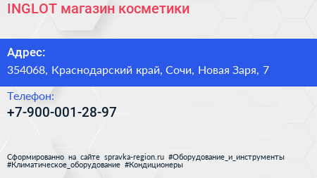 INGLOT, магазин косметики по адресу 354068, Краснодарский край, Сочи, Новая Заря, 7 в дальнейшем Организация, размещена в следующих категориях: