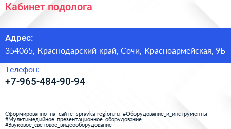 Кабинет подолога по адресу 354065, Краснодарский край, Сочи, Красноармейская, 9Б в дальнейшем Организация, размещена в следующих категориях: