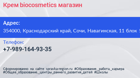 Крем biocosmetics, магазин по адресу 354000, Краснодарский край, Сочи, Навагинская, 11 блок 5 в дальнейшем Организация, размещена в следующих категориях: