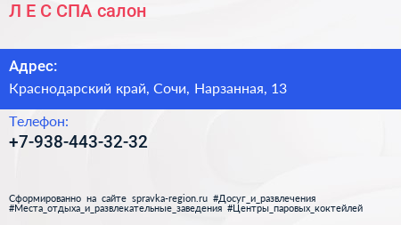 Л.Е.С, СПА-салон по адресу Краснодарский край, Сочи, Нарзанная, 13 в дальнейшем Организация, размещена в следующих категориях: