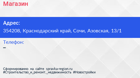 Магазин по адресу 354208, Краснодарский край, Сочи, Азовская, 13/1 в дальнейшем Организация, размещена в следующих категориях: