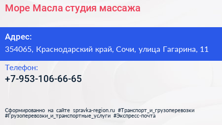 Море Масла, студия массажа по адресу 354065, Краснодарский край, Сочи, улица Гагарина, 11 в дальнейшем Организация, размещена в следующих категориях: