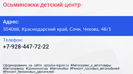 Осьминожки, детский центр по адресу 354068, Краснодарский край, Сочи, Чехова, 48/1 в дальнейшем Организация, размещена в следующих категориях: